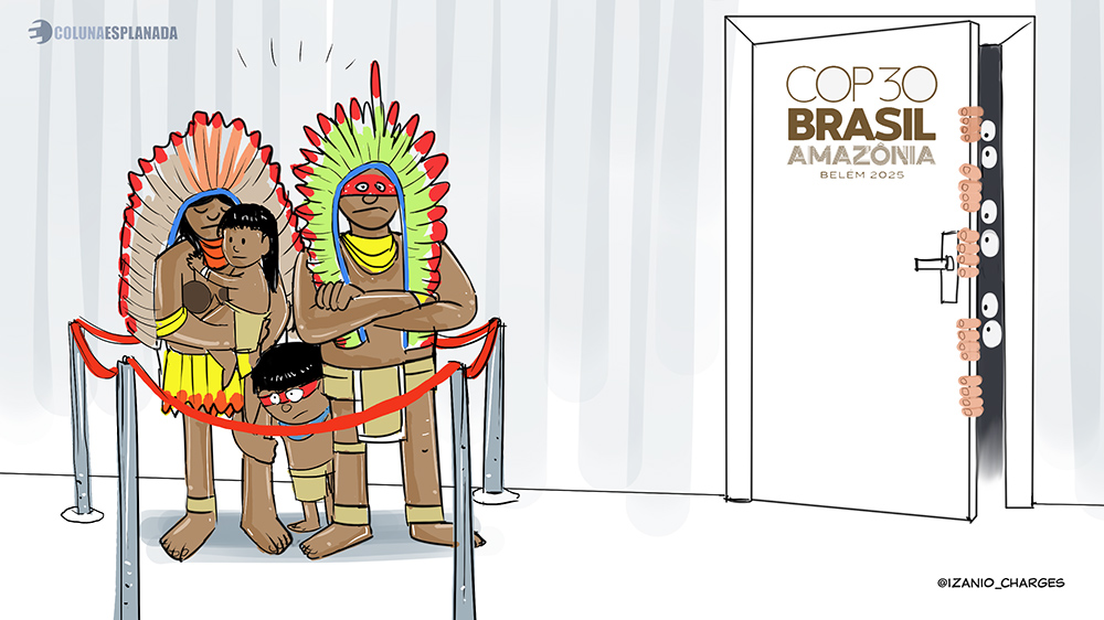 Os indígenas de variadas etnias de todo o Brasil, que viajaram em alguns casos mais de 2 mil km para participar da COP30 em Belém, são escanteados até no espaço destinado a eles no evento. Daí a revolta de terça (11) com a invasão de alguns deles nos espaços restritos a autoridades. Uma indígena contou à Coluna que levou seus artesanatos e não tem o lugar prometido para expor. São desdenhados pela organização e falta estrutura.