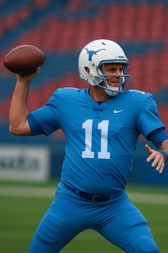 E claro que a turma da Inteligência Artificial tratou logo de projetar como seria o prefeito carioca com a bola oval e o uniforme características do esporte norte-americano (foto).