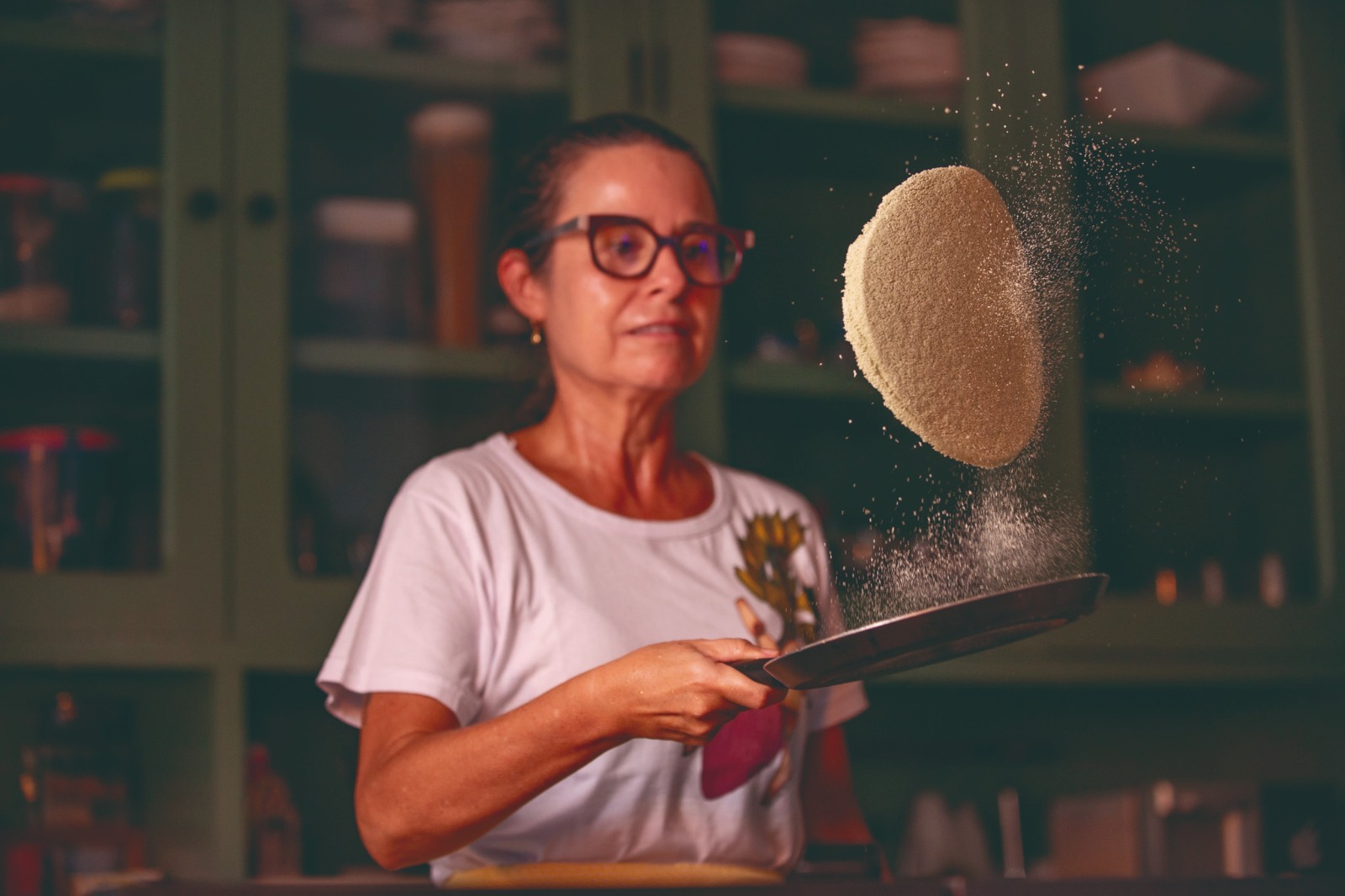 Ana Bueno é precursora da gastronomia contemporânea de Paraty e está na cidade há mais de três décadas. Nascida em São José dos Campos, ela construiu uma trajetória marcada pela escuta, a convivência e o trabalho direto com produtores e comunidades. À frente do restaurante Banana da Terra, participou de um momento de transformação da cidade e contribuiu para fortalecer a cadeia produtiva local e a valorização de seus saberes. Esse percurso se desdobra no livro ParatyAnas, uma escrita que se move entre memória e observação, a partir de imagens, encontros e deslocamentos, convidando a uma travessia pelo território através da comida.