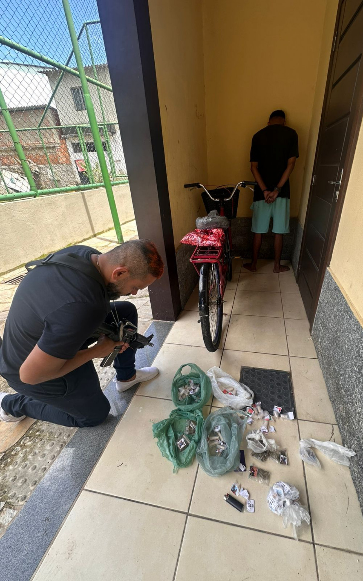Com o preso, os militares apreenderam 111 pedras de crack, 69 pinos de cocaína e 12 dolas de maconha. O material e o suspeito foram levados para a 166ª Delegacia de Polícia de Angra dos Reis, onde o caso foi registrado. O homem permanece preso à disposição da Justiça.