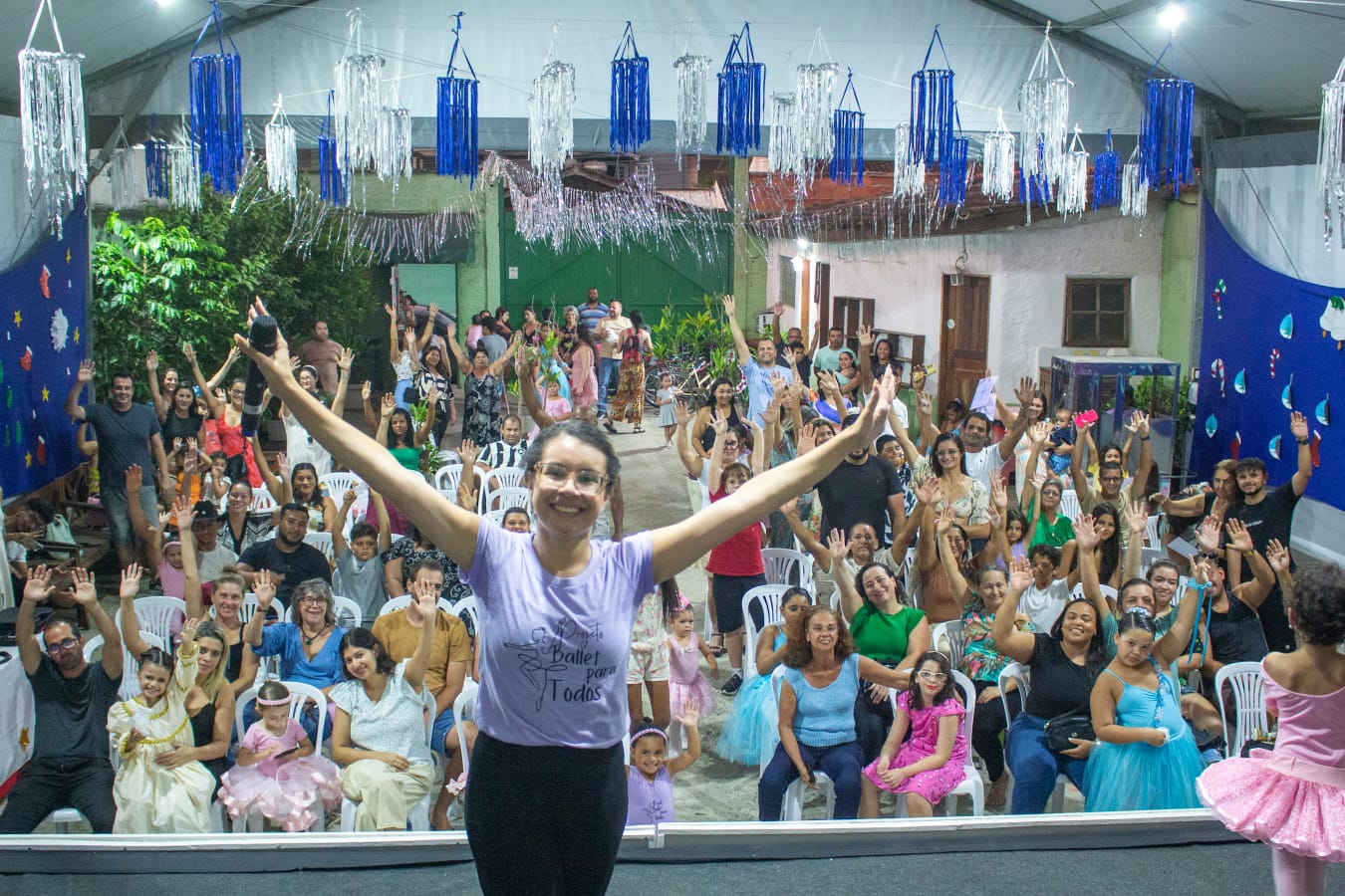 O projeto Ballet para Todos, que completa três anos em 2025, foi originalmente criado com um propósito social. Sua fundadora, a professora caiçara Thalía Polyphemo, formada pelo Theatro Municipal do Rio de Janeiro, idealizou o projeto como uma terapia auxiliar para crianças no espectro autista suporte 2.