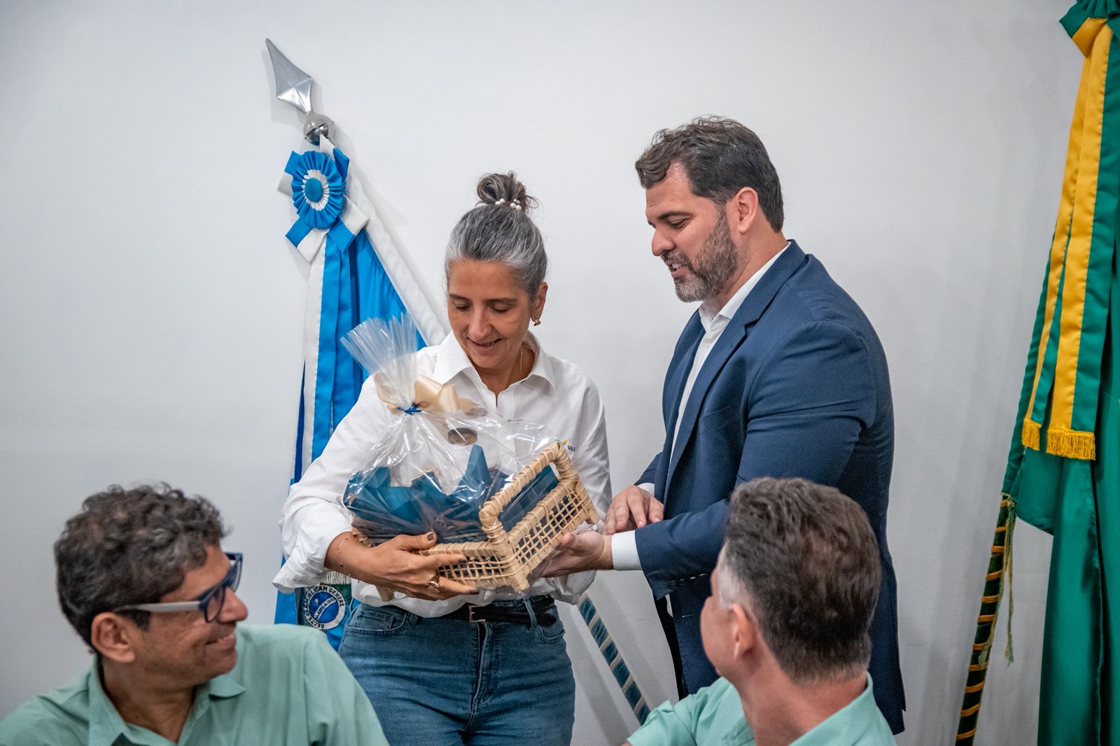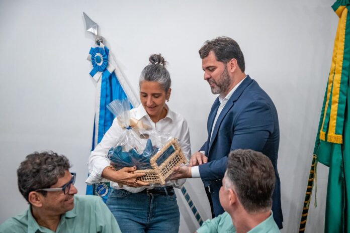 Como gesto simbólico, o prefeito presenteou a equipe da Vale com uma cesta de produtos locais, valorizando a cultura e a produção do município.